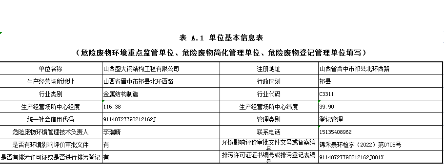 上一篇:山西盛大鋼構“六月安全培訓”順利召開 下一篇:2022年危險廢物申報年度報告表